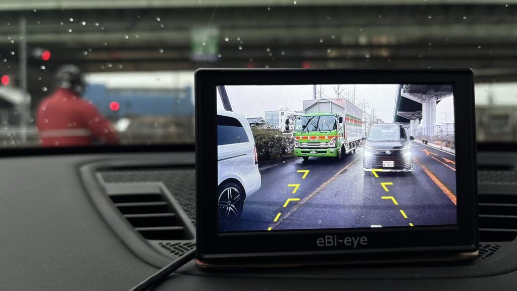 エビミラー (eBi-Mirror) は、ダッシュボードに設置したモニターに映すことで、後方・側面の視界を直感的に確認できる新感覚のスタンドバックミラーです。工具不要、貼るだけ簡単に取り付けられるため、初めてミラー補助機器を導入する方にも安心です。