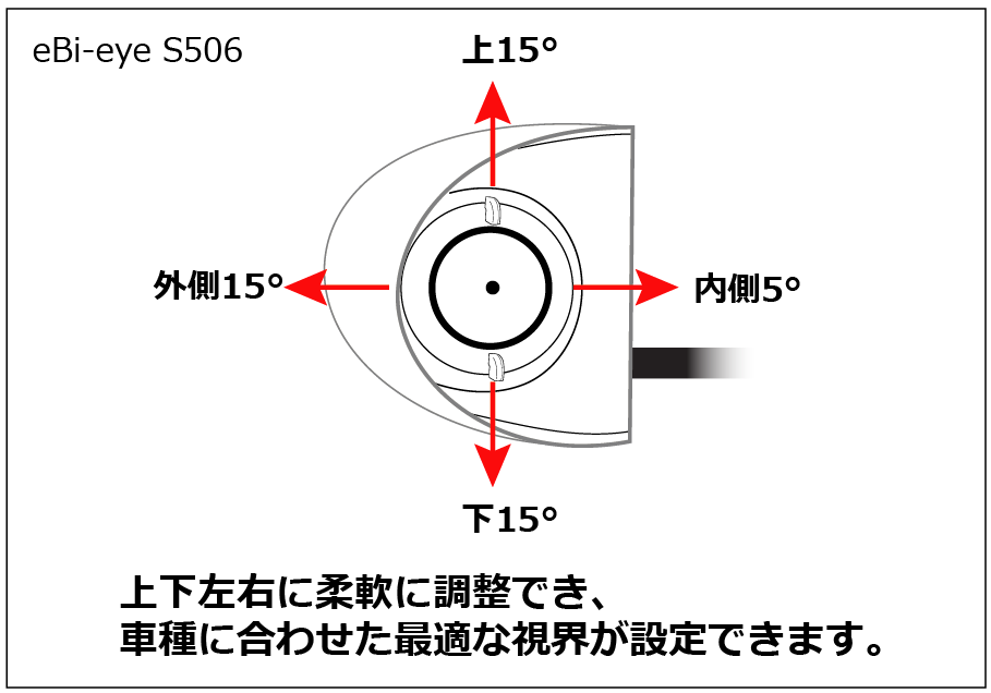 道路状況や車高に合わせて、画角の上下調整が可能です。