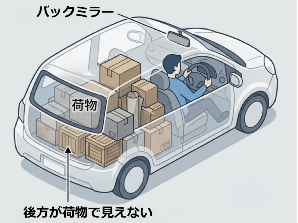 しかし荷物を積んだ場合などは、ルームミラーの視界が完全に遮られることがあります。